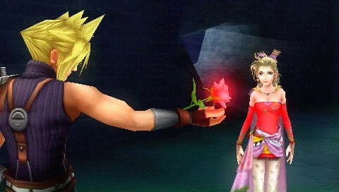 She opens her eyes and takes a step towards Cloud.]