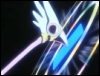 [The key expanded and transformed into a staff. Taking the transformed staff, Sakura tosses out a peculiar card which hovered in the air in front of the girl. Twirling the staff quickly, she recites another incantation.]